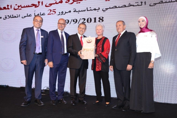 وقامت صاحبة السمو الملكي الاميرة منى الحسين بتكريم عدد من المؤسسات الصحية الوطنية والتي ساهمت ببناء قصة نجاح الأردن الصحية بشكل عام ونجاح المستشفى التخصصي بشكل خاص وهم: وزير الصحة الدكتور محمود الشياب، ومدير الخدمات الطبية الملكية اللواء الطبيب معين الحباشنة، ورئيس مجلس ادارة مركز الإسعاف الجوي الاردني اللواء يوسف الحنيطي، ورئيس لجنة الصحة والبيئة والسكان في مجلس الأعيان العين الدكتور يوسف القسوس، ورئيس لجنة الصحة والبيئة في مجلس النواب النائب الدكتور إبراهيم البدور، ونقيب الأطباء الدكتور علي العبوس، ونقيب أطباء الأسنان / رئيس مجلس النقباء الدكتور إبراهيم الطراونة، ونقيب الصيادلة الدكتور زيد روحي الكيلاني، ونقيب الممرضين والممرضات والقابلات القانونيات الدكتور خالد الربابعة، وأمين عام المجلس الصحي العالي الدكتور محمد رسول الطراونة، وأمين عام المجلس الطبي الأردني الدكتور نضال يونس، وأمين عام المجلس التمريضي الأردني الدكتور محمد يوسف صالح، ولتكريم قدامي الموظفين والذين استمروا مع المستشفى التخصصي منذ تأسيسه فقد تم تكريم أقدم موظف في المستشفى الأنسة إنعام بصيلة.