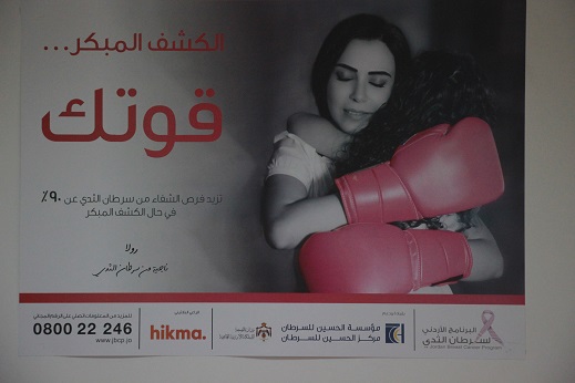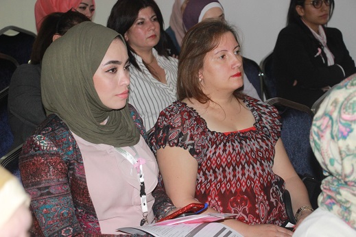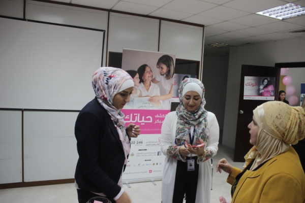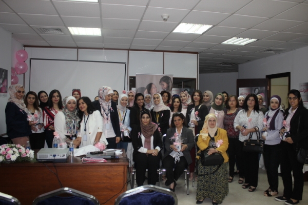 حيث اقامت محاضرة توعوية بالتعاون مع البرنامج الاردني لسرطان الثدي /مؤسسة الحسين للسرطان عن مراحل السرطان وفحوصات الكشف المبكر عنه تخللها فحص سريري مجاني..