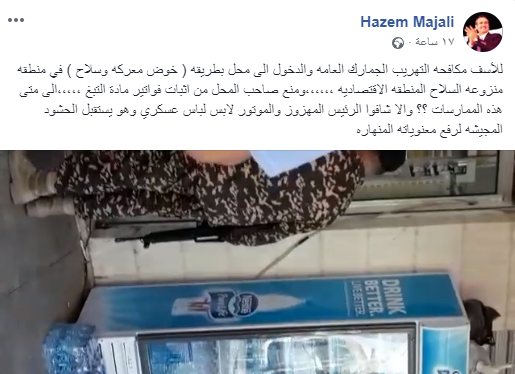 واشار الى انه من الواجب ان يتم التوقيع على الضبط من قبل موظفي المكافحة اثناء ضبط الدخان المهرب ويتم ايضا اخذ توقيع مالك السوبر ماركت ، الا ان موظفي المكافحة اخذوا البضاعة المضبوطة وغادروا وعادو مساءً للتوقيع على الضبط وهو ما رفضه التزاماً بالقوانين والانظمة ولمرور قرابة العشر ساعات على الضبط.