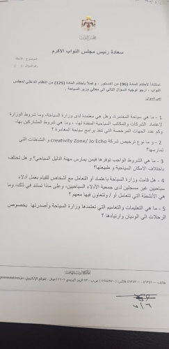 أخبار البلد - اخبار البلد - وجهت النائب ديمة طهبوب سؤالين نيابيين الى رئيس الوزراء الدكتور عمر الرزاز ووزيرة السياحة لينا عناب بخصوص حادثة زرقاء معين .