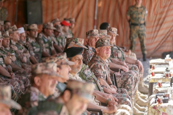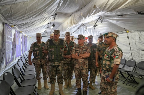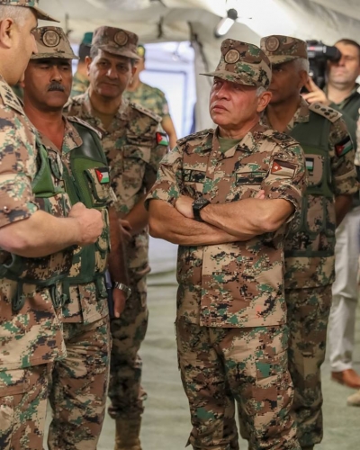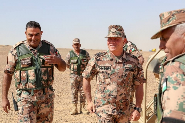 وكان في استقبال جلالته، لدى وصوله موقع التمرين، رئيس هيئة الأركان المشتركة الفريق الركن محمود عبدالحليم فريحات، وقائد المنطقة العسكرية الوسطى العميد الركن عدنان الرقاد.