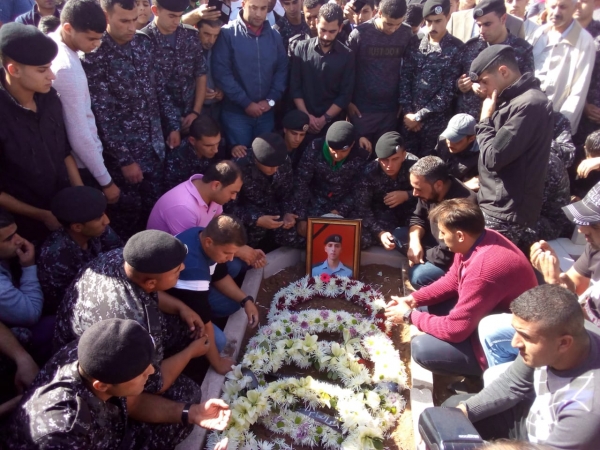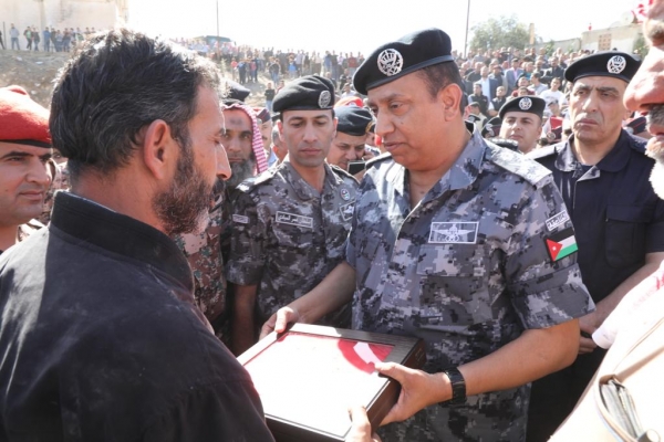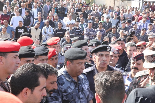 وشارك رئيس هيئة الأركان المشتركة الفريق الركن محمود فريحات، ومدير عام قوات الدرك اللواء الركن حسين الحواتمة ومدير الأمن العام اللواء فاضل الحمود، ومحافظ إربد رضوان العتوم، ومديري الأجهزة الأمنية في المحافظة في تشيع جثمان الشهيد.