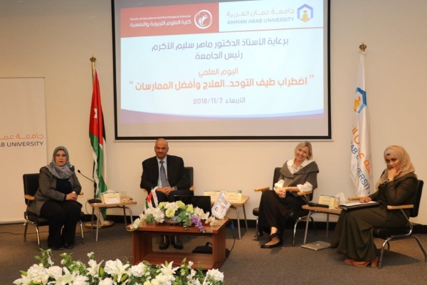 بدوره عرض رئيس قسم علم النفس التربوي والإرشاد و التربية الخاصة الدكتور أحمد الخزاعلة، في كلمته بالنيابة عن عميد كلية العلوم التربوية والنفسية الدكتورة هيام التاج المسؤولية الأخلاقية المجتمعية والتربوية لرفع مستوى الفهم والوعي بهذا الاضطراب لدعم هذه الفئة ، مبيناً ضرورة أن نعيد النظر في ممارساتنا المهنية لنسير على النهج العلمي في التعامل مع ذوي اضطراب طيف التوحد، وتمكين هذه الفئة من العيش بكرامة وامتلاك أسباب القوة وانتهاج السبل للمشاركة في التنمية ومواجهة التحديات وتحديداً لتمكين النساء والأطفال حيث جاء شعار الأمم المتحدة هذا العام في يوم التوعية باضطراب طيف التوحد " تمكين النساء والفتيات المصابات باضطراب طيف التوحد".{