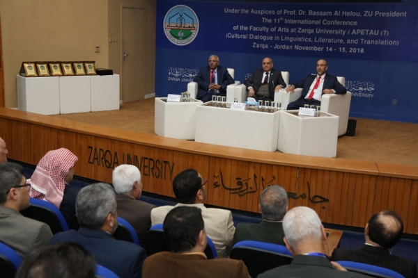 برعايةرئيس جامعة الزرقاء الأستاذ الدكتور بسام الحلو،انطلقت اليوم الأربعاء فعاليات المؤتمر الحادي عشر لكلية الآداب بعنوان"الحوار الثقافي في اللغة والأدب والترجمة" بالتعاون مع جمعية أساتذة اللغة الانجليزية وآدابها في الجامعات العربيةAPETAU""بمشاركة نخبة من العلماء والباحثين من (16) دولة عربية وأجنبية، بحضور رئيس مجلس إدارة شركة الزرقاء للتعليم والاستثمار الدكتور محمود ابو شعيرة، ورئيس مجلس الأمناء معالي المهندس سمير الحباشنة.