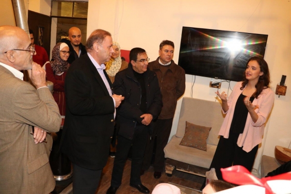 المعرض الذي جاء على أصوات الموسيقى، وفي مركز جدل ذو الجذور الشامية في البناء حيث "أرض الديار.. والبحرة (النافورة)"، ما يدل على حضور المكان ودلالته في استثمار فضاء التعبير المتوفر وهو على انواع، حيث من يقرأ في غرفة مخصصة لذلك، أو يمارس العزف والغناء أيضا في مكانه الاخر حيث الخصوصية.