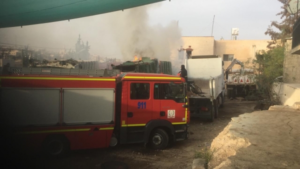 نشب ظهر هذا اليوم حريق داخل كراج بلدية الزرقاء تسبب بحريق احد ضاغطات البلديه الموجوده داخل الكراج