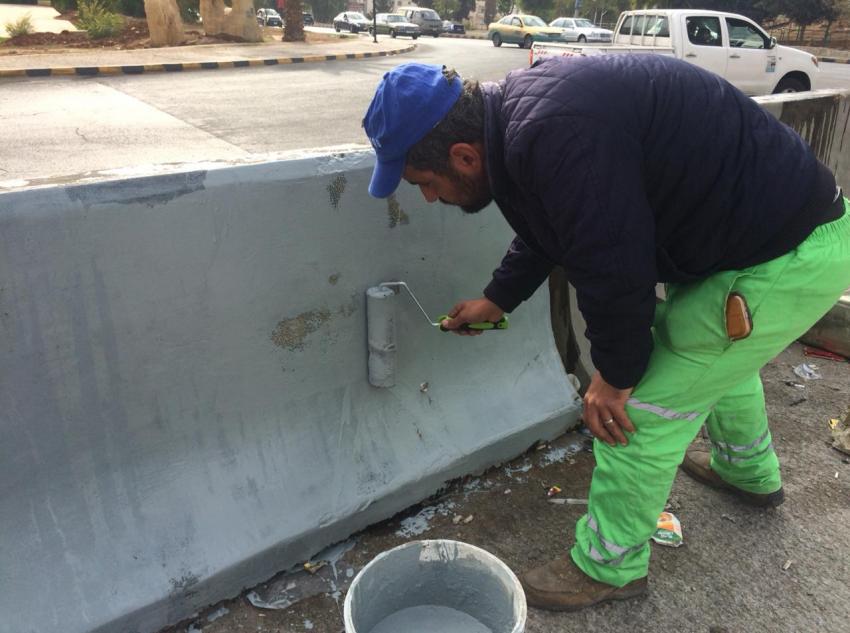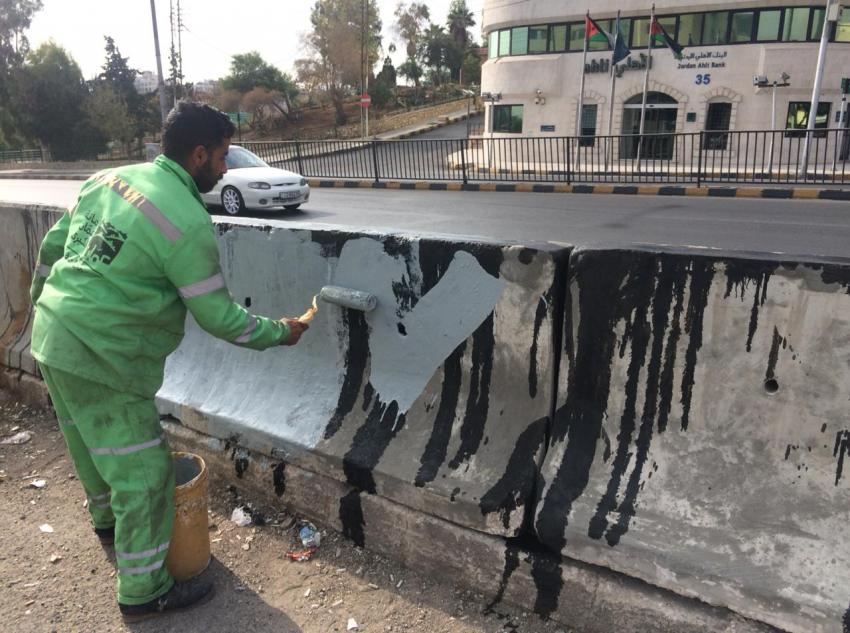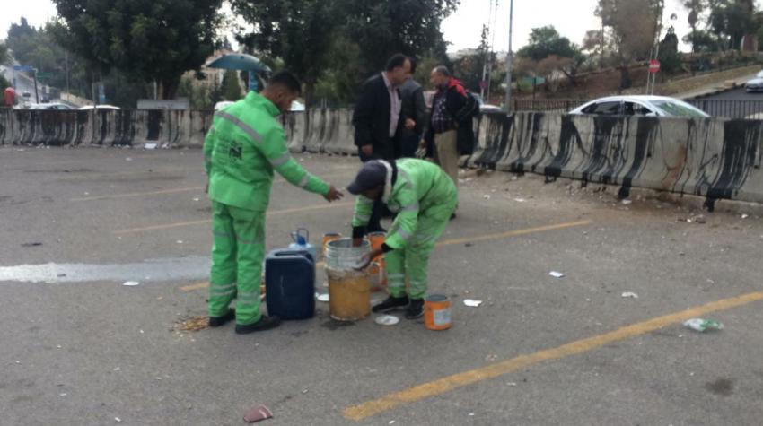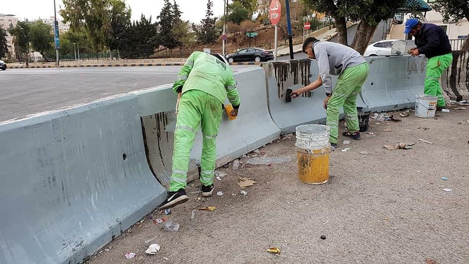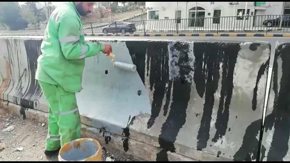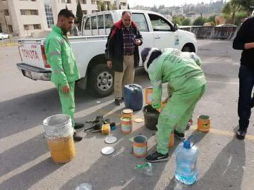 الأمانة تزيل الزيوت التي سكبها مجهولون في ساحة الدوار الرابع ..صور