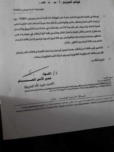 أخبار البلد - حذرت مديرية الامن العام من انتشار لعبة على الهواتف الذكية تسمى ببجي PUBG بين مرتبات الامن العام بشكل خاص والمواطنين بشكل عام.