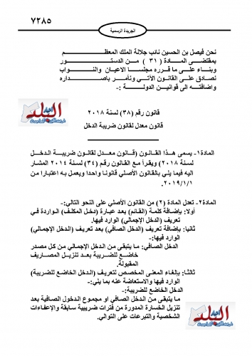 وكان مجلس النواب قد أقر التعديلات على القانون، ثم أقرها مجلس الأعيان بالتوافق.