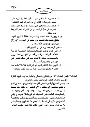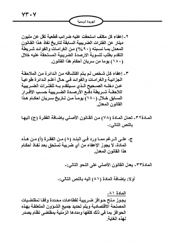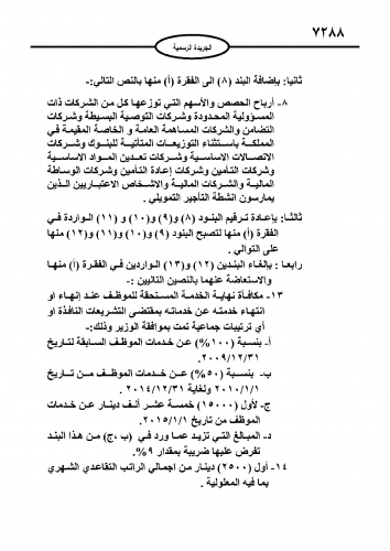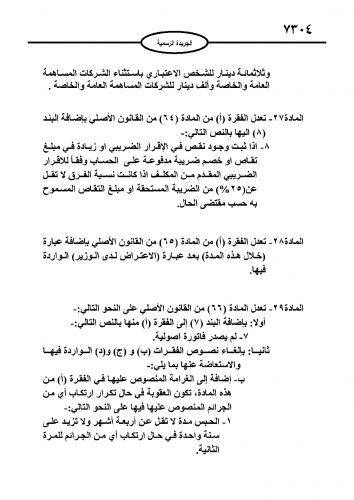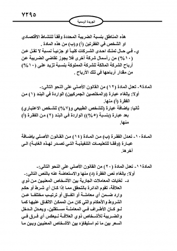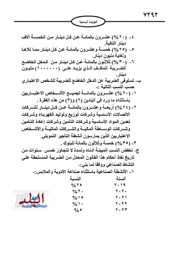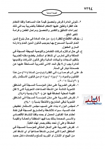 نشر في عدد الجريدة الرسمية اليوم الأحد مشروع قانون الضريبة كإجراء نهائي لدخوله حيز التنفيذ مطلع العام المقبل.