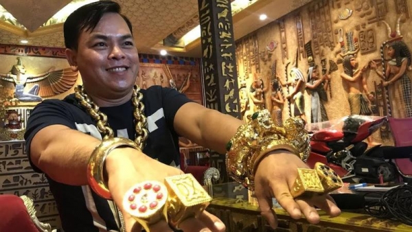 ووفقًا لموقع "أوديتي سنترال"، جذب "تران فوك" صاحب الـ36 عاماً، اهتمام الكثيرين عبر مواقع التواصل الاجتماعي، لارتدائه أكثر من 13 كيلوغراماً من الذهب، كما يرافقه ما لا يقل عن 5 حراس لكي يحافظوا على أمنه وسلامة الذهب الذي يرتديه.