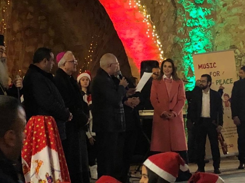 شاركت جلالة الملكة رانيا العبدالله، اليوم، أبناء الطوائف المسيحية في مدينة الفحيص، إضاءة شجرة عيد الميلاد، بمناسبة الاحتفال بعيد الميلاد المجيد ورأس السنة الميلادية.