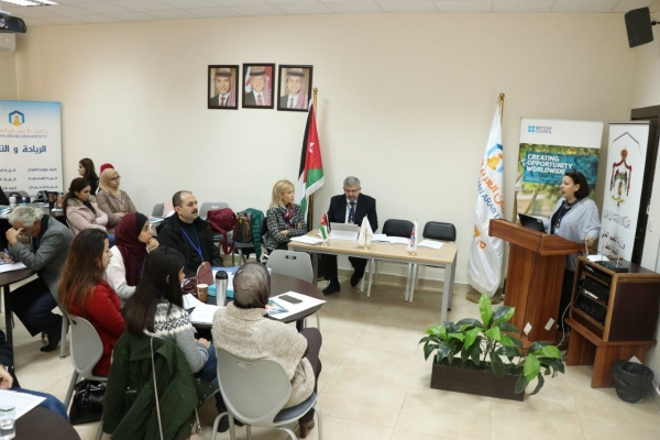 واستضافت الجامعة ورشة العمل التي عقدت بالتعاون بين المجلس الثقافي البريطاني، ووزارة التعليم العالي والبحث العلمي، وجامعة بليموث البريطانية، واستهدفت نحو 45 مدير وعضو بمراكز التطوير وضمان الجودة؛ وتأتي هذه الورشة ضمن سلسلة ورشات نفذت على مدار عام في الجامعات الأردنية.