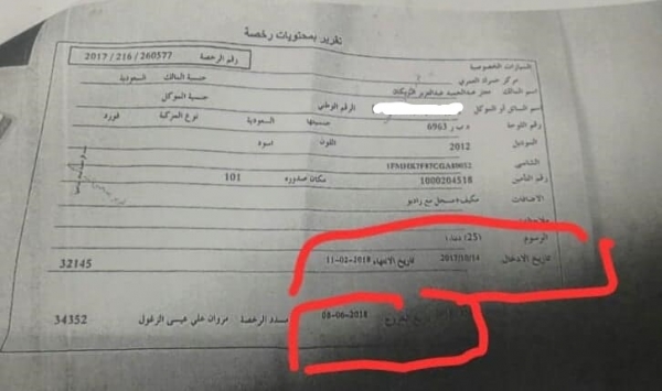 وطالب الذيب الجهات المختصة بفتح تحقيق وكشف كيفية خروج مركبة تم التعميم عليها من الاردن الى السعودية والعودة مشيراً الى انه قدم تقدم بشكوى لدى المحكمة المختصة.