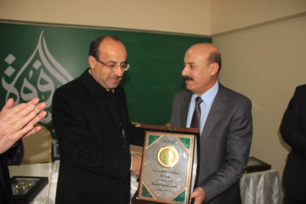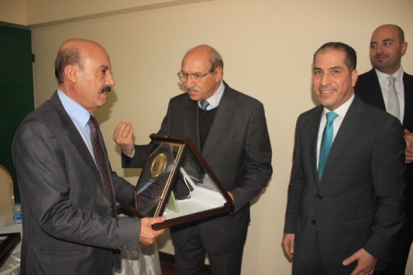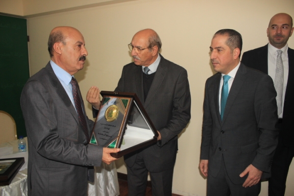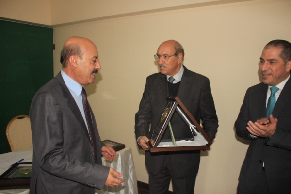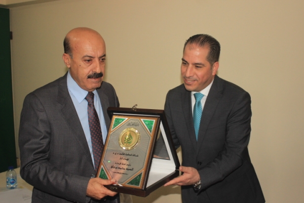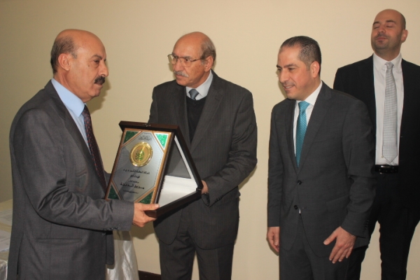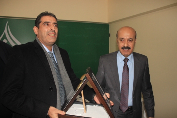 الاجتماع دروع تقديرية باسم الشركة والمساهمين الى كلا من معالي وزير الصناعة والتجارة ورئيس لجنة الادارة الخبير التاميني محمد برجاق والعضوين المتميزين اياس عاشور ويزن محادين