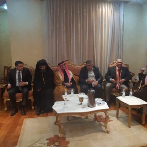 في اجواء حميمية دافئة التقى رئيس الديوان الملكي يوسف العيسوي بوجهاء محافظة الزرقاء على مائدة النائب السابق الشيخ ضيف الله القلاب بحضور محافظ الزرقاء د. محمد السميران ومدير الشرطة العميد سامي شموط وعدد من مدراء الدوائر الرسمية والأمنية.