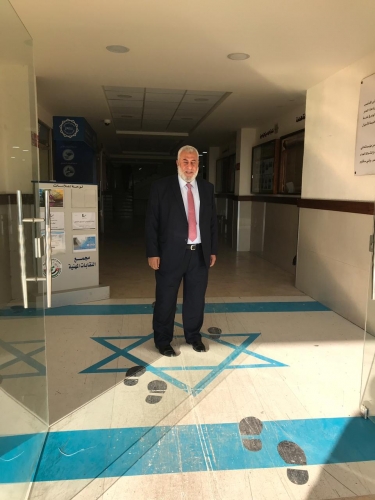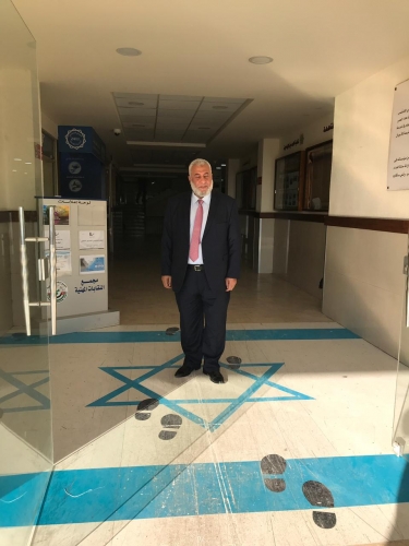 وتقدم ابو السيد بالشكر لمجمعات النقابات المهنية على وضع صورة علم الصهاينة على ابواب المجمعات في المحافظات.