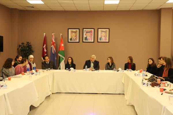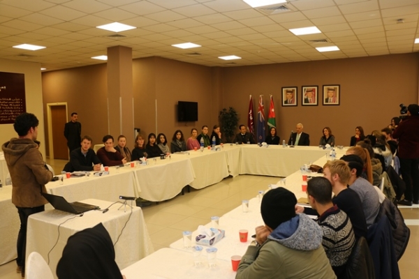 وقام الطلبة الاستراليين بتقديم عرض عن تاريخ الاردن والحضارات المتعاقبة عليه بالاضافة الى استعراض أبرز العادات والتقاليد التي تتميز بها الأردن في مختلف المناحي معبرين عن سعادتهم وشعورهم بالسلام لتواجدهم في الأردن مثمنين حسن الضيافة لدى زملاءهم الطلبة الأردنيين.