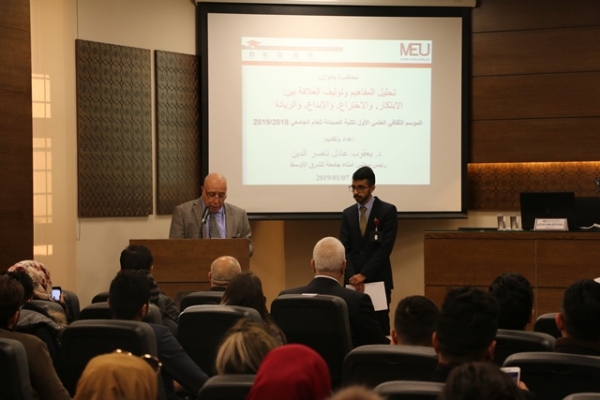 جاء ذلك في محاضرة القاها الدكتور ناصر الدين تحت عنوان "تحليل المفاهيم وتوليف العلاقة بين الابتكار والاختراع والابداع والريادة" في افتتاح الموسم العلمي والثقافي الاول لكلية الصيدلة في جامعة الشرق الاوسط، وحضرها نائب الرئيس الدكتور محمود الوادي وعميد كلية الصيدلة الدكتور عمار المعايطة وعدد من اعضاء الهيئتين التدريسية والادارية في الكلية والطلبة.