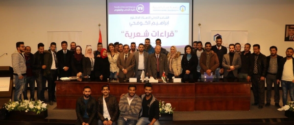 ونظمت اللجنة الثقافية في كلية الآداب والعلوم الندوة الشعرية ، التي رعاها عميد الكلية الدكتور عادل جميل، بحضور عدد من أعضاء الهيئة التدريسية والطلبة، حيث عرفت الندوة بالشاعر وأعماله العلمية والأدبية.