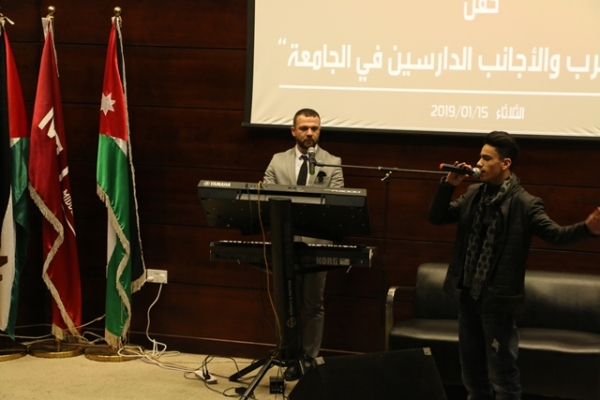 وتخلل الاحتفالية فقرات شعرية ، وفقرات فنية غنائية وطنية قدمها كورال الجامعة ، بالإضافة الى تقديم منتسبي نادي الطلبة الوافدين في عمادة شؤون الطلبة عرضا مسرحيا بعنوان " عائلة طيبة" يحاكي واقع البلاد العربية وماتعايشه من تحديات، مؤكدا على اهمية الوحدة العربية.