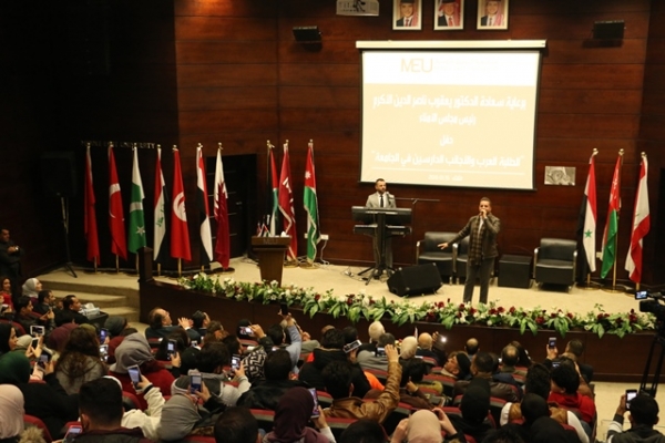 وبين راعي الحفل الدكتور ناصرالدين خلال الحفل الذي حضره رئيس الجامعة الأستاذ الدكتور محمد الحيلة ، وعدد من الملحقين الثقافيين العرب وعدد من ممثلي الجاليات في الأردن أن جامعة الشرق الأوسط حاضنة جميع الطلبة من مختلف الأعراق والجنسيات همها الاوحد أن توفر لأبنائها الطلبة الاجواء الصادقة الأسرية التي تشعرهم بأنهم في بيتهم فوجودهم فيها يعزز العمق القومي لها وهي تدرك أن التحديات التي يعايشها الوطن العربي حالها واحد والمصير واحد عندما يكون الهدف هو نهضة الامة ورفعتها، مشيرا إلى أن الطلبة الأردنيين هم اخوان وأشقاء كل الطلبة من العرب والجانب.