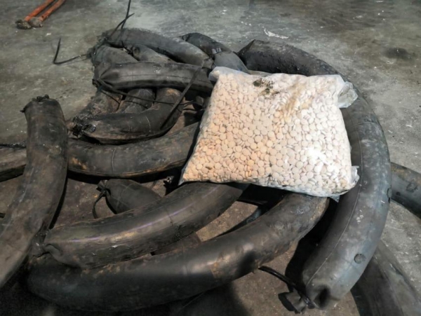 وأضاف الناطق الإعلامي أن التحقيقات قادت لتحديد هوية الشخصين ومكان إخفائهما لتلك الكمية في مخابئ سرية داخل إطارات إحدى مركبات الشحن في منطقة أبو علندا شرق العاصمة تمهيداً لتهريبها لإحدى دول الجوار حيث جرت مداهمتهما وإلقاء القبض عليهما، وبتفتيش المركبة عثر على ١٠٠ ألف حبة من حبوب الكبتاجون المخدرة أخفيت داخل إطاراتها ، وبوشر التحقيق.