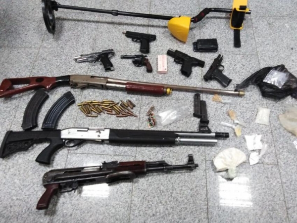 وفي القضية الأخرى تمكن العاملون في إدارة مكافحة المخدرات من تحديد مكان تواجد مجموعة من الأشخاص المشبوهين بقضايا ترويج المواد المخدرة وحيازة وإطلاق العيارات النارية وترويع المواطنين وإقلاق الراحة العامة في منطقة سحاب شرق العاصمة حيث جرى مداهمة المكان وألقي القبض على ثماينة أشخاص جميعهم من ذوي الأسبقيات الجرمية ومن بينهم أربعة أشخاص مطلوبين بعدة طلبات، وبتفتيش المكان ضبط ثماني أسلحة نارية وكمية من الذخيرة إضافة إلى نصف كيلو من بودرة الحشيش الصناعي وكميات متفرقة من الحبوب والمواد المخدرة، وبوشرت التحقيقات.