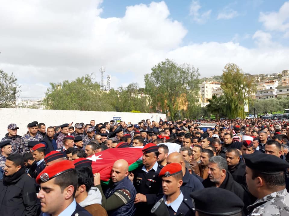 بمراسم عسكرية ، شيع مواطنون ظهر اليوم الجمعة، جثمان الشهيد الملازم أول أحمد فياض الجالودي إلى مثواه الأخير، في مسقط رأسه، في ماحص التابعة لمحافظة البلقاء، والذي استشهد جراء انفجار لغمين قديمين في منقطة نقب الدبور بالسلط.