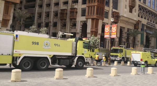 وقال المتحدث الرسمي للإدارة العامة للدفاع المدني نايف الشريف، إنه "في تمام الساعة 11:41 من يوم الأحد، ورد بلاغ مفاده بوقوع حادث حريق في فندق بمشروع جبل عمر".