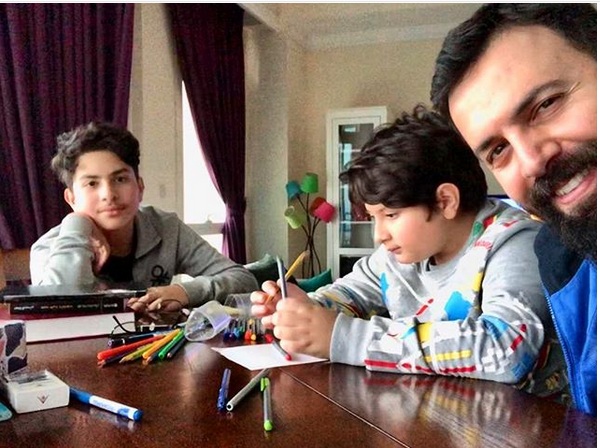 ونشر حسن عبر "إنستغرام" صورة جمعته مع نجلاه حيث بدا يشرف عليهما خلال ممارستهما هواية الرسم، واللافت هو نضوج ابنه البكر ورد الذي اصبح في مرحلة المراهقة.