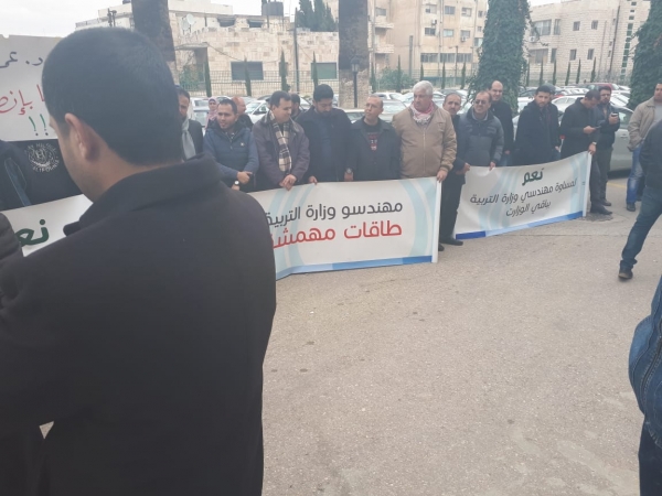 نفذ مجموعة من منتسبي نقابة المهندسين العاملين في وزارة التربية والتعليم وقفة احتجاجية اليوم الاحد امام وزارة التربية والتعليم .