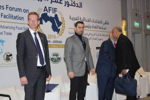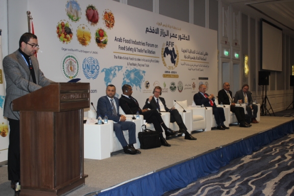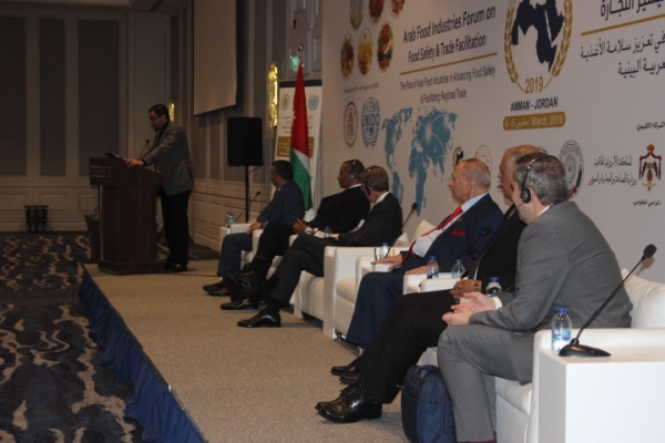 وافاد ممثل جامعة الدول العربية الدكتور بهجت ابو نصر، بان الجامعة حريصة على توثيق صلاتها مع القطاع الخاص بما يخدم اهداف استكمال تطبيق احكام منطقة التجارة الحرة العربية الكبرى، مشيرا إلى ان التجارة البينية للمواد الزراعية والغذائية في المنطقة العربية تتعرض لبعض العراقيل منها (عدم اتساق اجهزة سلامة الغذاء، واختلاف جاهزية هذه الانظمة).