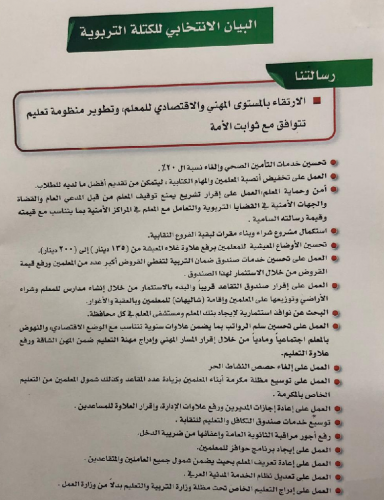 أخبار البلد - اصدرت الكتلة التربوية لانتخابات نقابة المعلمين لمحافظة العاصمة بيانها الانتخابي ، والذي تضمن رسالة الكتلة وهي الارتقاء بالمستوى المهني والاقتصادي للمعلم وتوير منظومة تعليم حيث تتوافق مع ثوابت الامة اضافة الى .