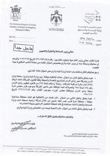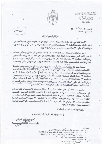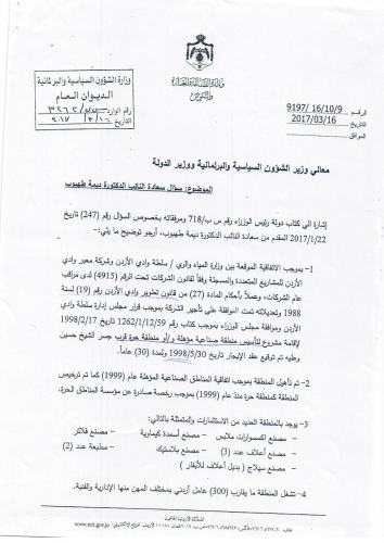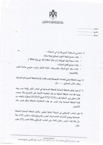وكشفت النائب ديمة طهبوب أن الحكومة وفي ظل التصعيد الصهيوني، ورغم التعدي المستمر لهذا العدو على السيادة الأردنية، وانتهاكه كافة اتفاقيات الشؤم الموقعة معه، ماضية بتنفيذ مشروع جسر بوابة السلام مع العدو الصهيوني عبر تأجير أراض أردنية للمحتلين الصهاينة، لتنفيذ المشروع الذي يتضمن بناء مصانع ومنطقة حرة مع العدو المحتل وبتمويل منه، مؤكدة أن هذا المشروع يمكن ويخدم المشروع الصهيوني الاقتصادي في المنطقة وعلى حساب مصالح الأردن.