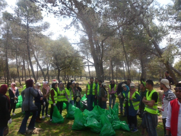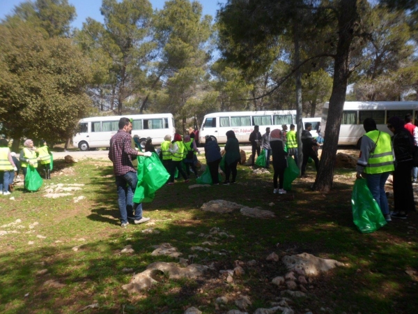 وقام المتطوعون بإشراف عمادة شؤون الطلبة، والبالغ عددهم (43) طالب وطالبة من كليات الجامعة المختلفة بالاشتراك مع نظرائهم من الجامعات الأردنية بتنظيف غابات جلعاد في محافظة البلقاء.