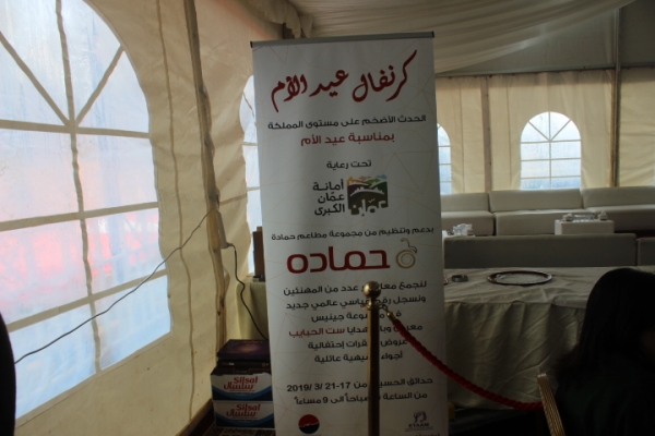 اقامت مجموعة مطاعم حماد بدعم وتنظيم من خلالها وتحت رعاية امانة عمان الكبرى وبدعوة من مؤسسة إطعام للتنمية والتدريب الحدث الاضخم على مستوى المملكة بمناسبة عيد الام في حدائق الحسين والذي بدء صباح اليوم وسيستمر لغاية 21/3/2019 من الساعة 9 صباحاً ولغاية الساعة 9 مساءً