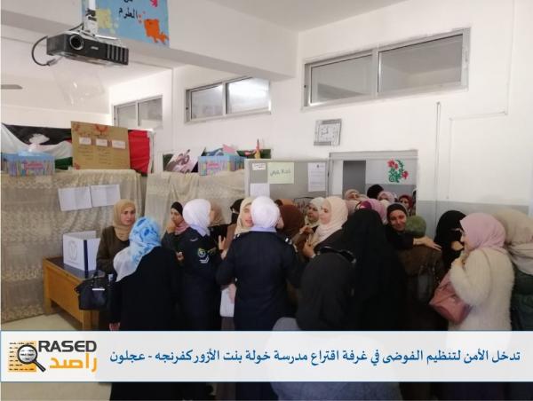 5. تواجد أشخاص داخل غرف الاقتراع دون ارتدائهم لأي باج رسمي يسمح لهم بالدخول ومثل ذلك مدرسة العدنانية الثانوية للبنات في محافظة الكرك.