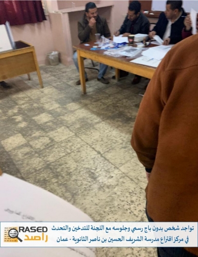 4. وثق فريق الرصد قيام بعض اللجان الانتخابية بتوقيع وختم أوراق الاقتراع دون وجود ناخبين ومثال ذلك مدرستي أحمد اللوزي والنصر الثانوية في العاصمة عمان، وهذا يؤثر على نزاهة العملية الانتخابية.
