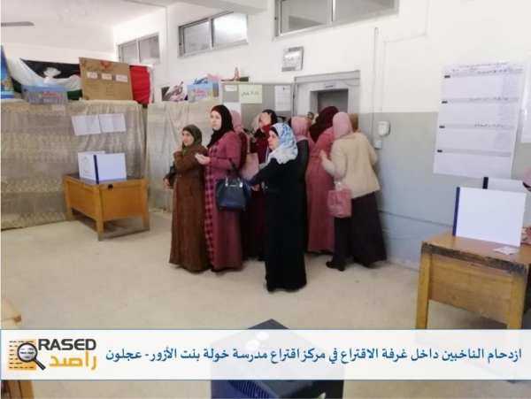 3. بينت نتائج الرصد وجود تزاحم في معظم مراكز الاقتراع بسبب بطئ في عملية الاقتراع والذي تسبب به ضعف وعي بعض أعضاء الهيئة الناخبة بالإجراءات الواجبة عند عملية الاقتراع ومثال ذلك مدرسة الخنساء في محافظة عجلون، ومدرسة فاطمة الزهراء في محافظة مادبا.