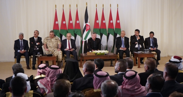جلالة الملك الذي اكد على الثوابت الملكية والهاشمية ازاء قضايا المنطقة وعلى وجه الخصوص القضية الفلسطينية ومحورها القدس الشريف والذي حرص جلالته ان يبدأ حديثه السامي بالاشارة اليها بمطلع اللقاء وشدد على انها بالنسبة لجلالته القدس خط أحمر، حرص بذات الطرح على الاشارة الى لحمة الاردنيين تجاه وطنهم بتأكيد جلالته "بالنسبة لي القدس خط أحمر، وشعبي كله معي".