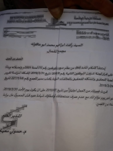 وهدد احد العاملين في صوامع الرمثا بالانتحار من اعلى احد الصوامع في حال تمسكت الادارة بقرارها.