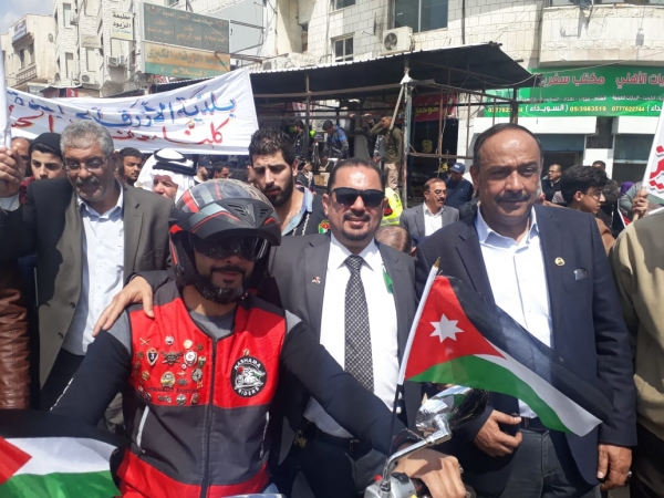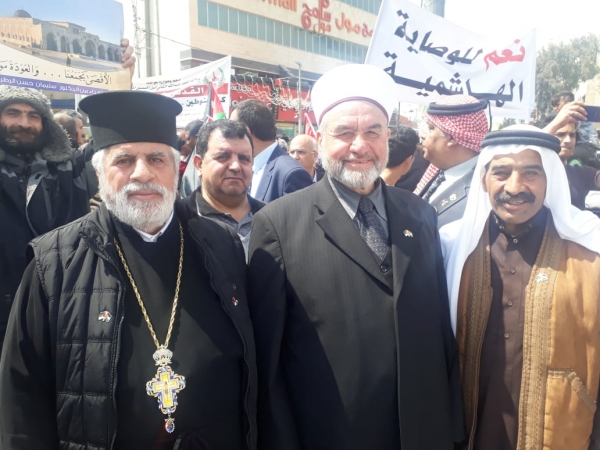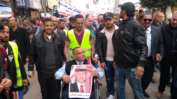 وأكد المشاركون في المسيرة التي دعا اليها مجلس محافظة الزرقاء وشارك فيها ممثلو الفعاليات الشعبية والاطر الثقافية والاتحادات والجمعيات واعلامييون، على موقفهم الداعم للقيادة الهاشمية ازاء القدس والوصاية الهاشمية ، وكذلك الالتفاف حول سيادة القرار الاردني دعما ومساندة للاشقاء الفلسطينيين بتقرير مصيرهم والتي كان دعا اليها مجلس محافظة الزرقاء.