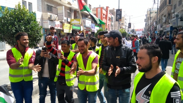وجابت المسيرة التي انطلقت من امام مقر شركة الكهرباء بشارع الملك حسين، شوارع الوسط التجاري وسط تنظيم محكم واسع حقق هدف المسيرة التي زاد تعداد المشاركين فيها بعد التحاق المواطنين بها اثناء مرورها بشوارع الوسط التجاري الى ما يزيد عن عشرة الاف مواطن ، هتفوا لمليكهم ولوطنهم الاردني مؤازرين وداعمين لقرارات الاردن الرسمي.