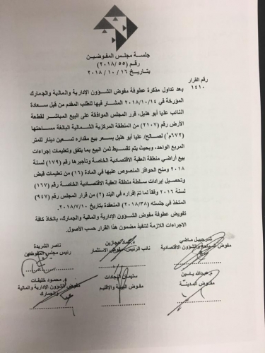 كشفت النائب عن محافظة العقبة عليا ابو هليل انها تقدمت منذ عامين ونصف العام بطلب لسلطة منطقة العقبة الاقتصادية الخاصة لشراء قطعة ارض ، واشارت الى انه ونتيجة تسويف السلطة ان تقدمت وحصلت على الموافقة بشراء القطعة مؤخراً وبسعر اعلى من السعر السابق والذي كان (70) دينار للمتر واعلى من سعر السوق حيث بلغ سعر متر الارض (98) دينار.