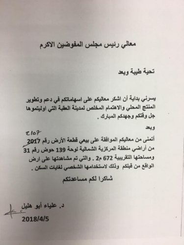 وتساءل المجالي لو لم تكن زميلته ابو هليل نائب هل ستوافق السلطة على بيعها قطعة الارض ؟ ولماذا حصلت على الموافقة بالمقابل حصل مواطنون على رفض؟.