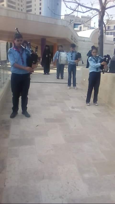 وقام طلبة الثانوية العامة بتسليم طلبة الأول ثانوي شعلة المدرسة وذلك لتنير دربهم في العام الدراسي الأخير من حياتهم المدرسية.