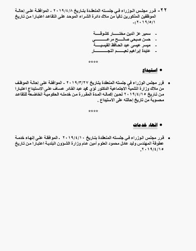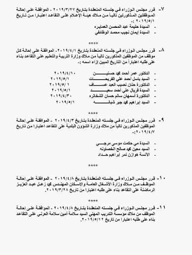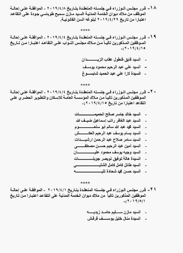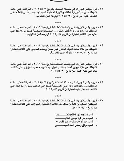 اخبار البلد - قرر مجلس الوزراء احالة عدد من الموظفين الحكوميين الى التقاعد واحالة اخرين الى الاستدعاء. وتاليا الاسماء: