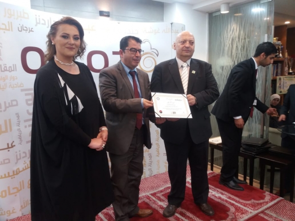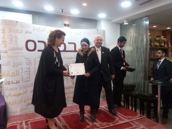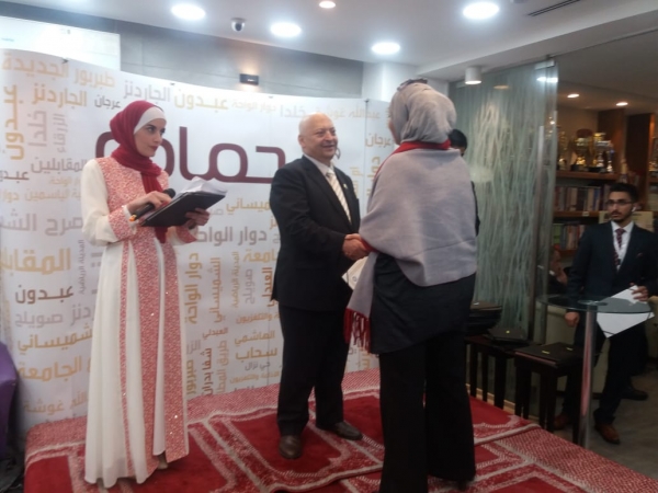 كما عبر رائد حماده عن جزيل شكره وتقديره لغرفة تجارة عمان ولكافة الهيئات الرسمية والمؤسسات والمدارس والجامعات الذين استضافوا المبادرة وكثفوا جهودهم لجمع التهاني وقدم لهم شهادات التكريم تقديراً لجهودهم الكبيره.