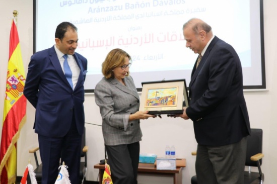 من جهته عرض رئيس هيئة المديرين، عضو مجلس أمناء الجامعة الاستاذ أحمد الخالد لأهمية الاستثمار في العلاقات القوية بين البلدين حتى تنعكس إيجابيا لمواجهة البطالة وتوفير فرص عمل للشباب الذي يعاني من البطالة، حيث أكدت السفيرة دافالوس على أن الأردن يتمتع بميزة تنافسية مهمة وهي الأمن والاستقرار ما يشجع الشركات الاسبانية على استهدافها استثماريا ما قد ينعكس على عملية التشغيل والتقليل من البطالة.